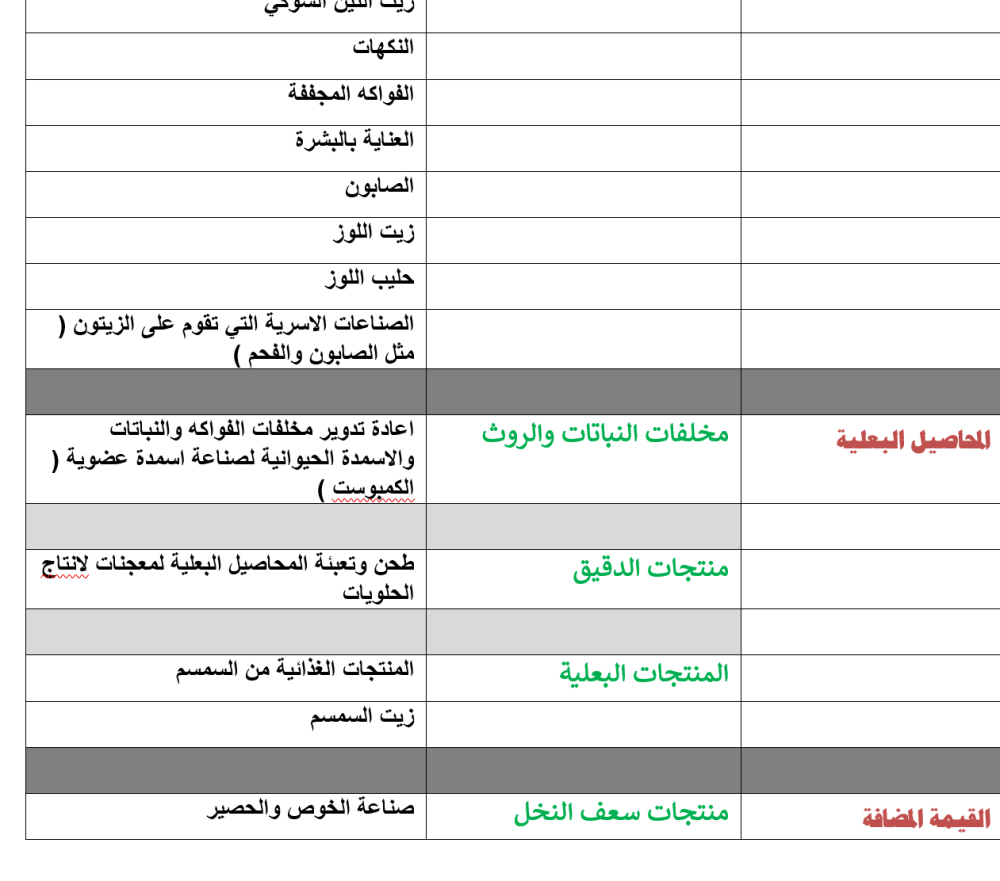 قمنا بتصميم هذه الكشف بحيث يحتوي على قائمة مصنفة للقطاعات الرئيسية في ريف وما يندرج تحتها من الانشطة والمنتجات المستهدفة كاملة .